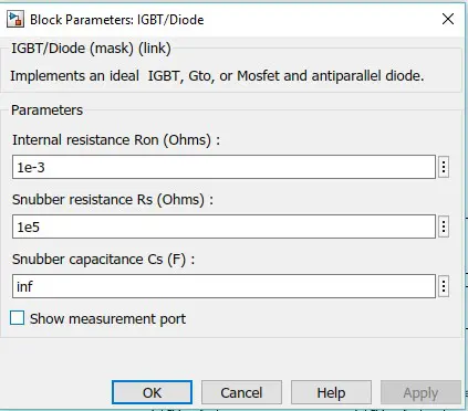 Thus, to access the block properties, double-click on the thyristor block, and in the block parameters dialog box, uncheck the point of showing the measurable port. Refer to the figure below.