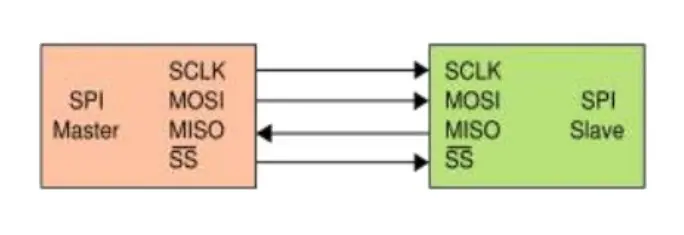As we mentioned earlier, the SPI bus consists of a single master and multiple slave devices. But SPI bus can be used in different configurations like a single master and a single slave as shown in the diagram below.